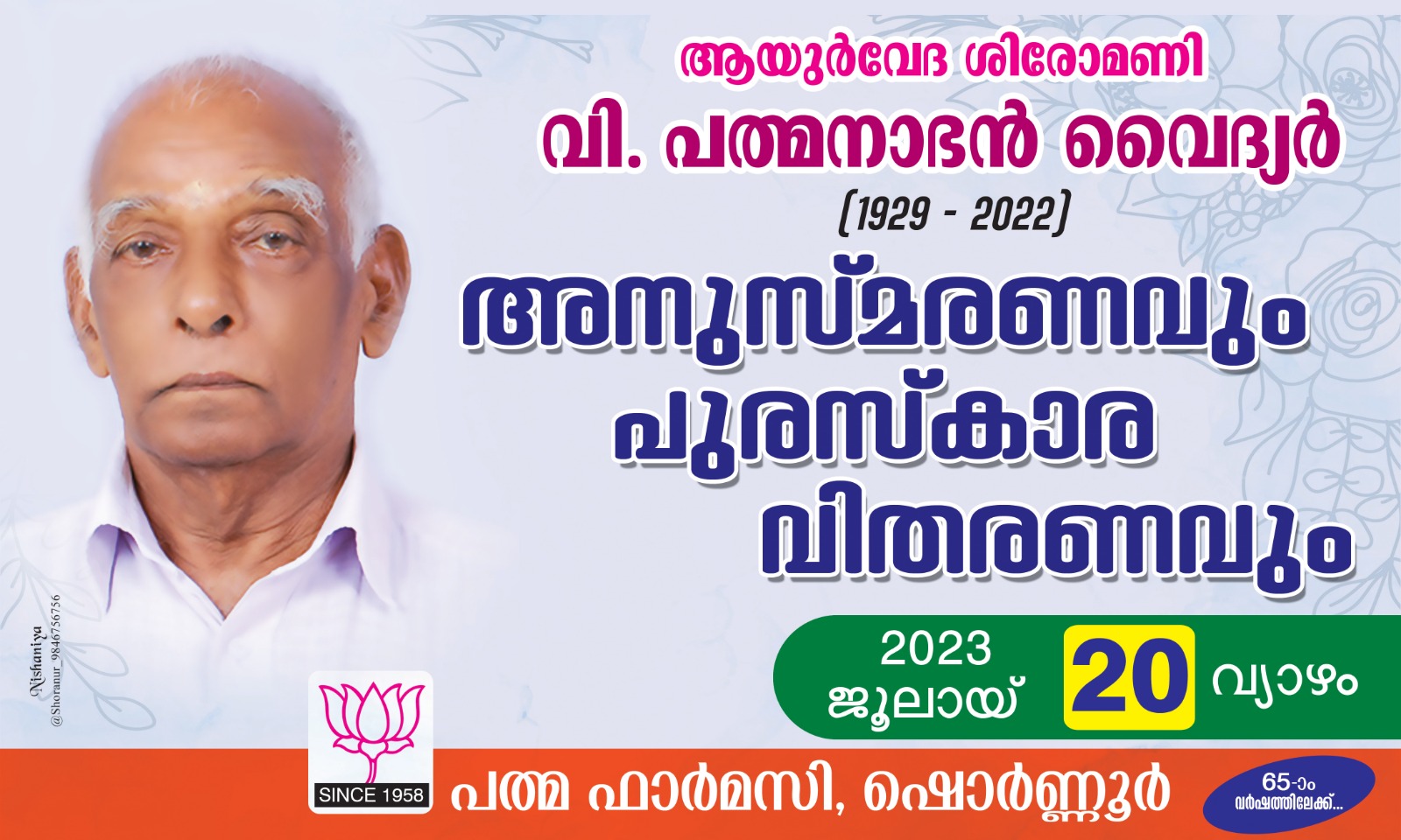 The Late padmanabhan vaidyar, a Master physician is a well known name synonymous with Ayurveda. Founder of PADMA PHARMACY, he is been a solace for thousands with his Ayurvedic treatment style and medicines. He had his formal education from the punnassery Sanskrit college, pattambi. Later earned the AYURVEDA SHIROMANI certificate from the Madras University, before entering into the Ayurveda field and devoting his entire life serving the humanity through Ayurveda.